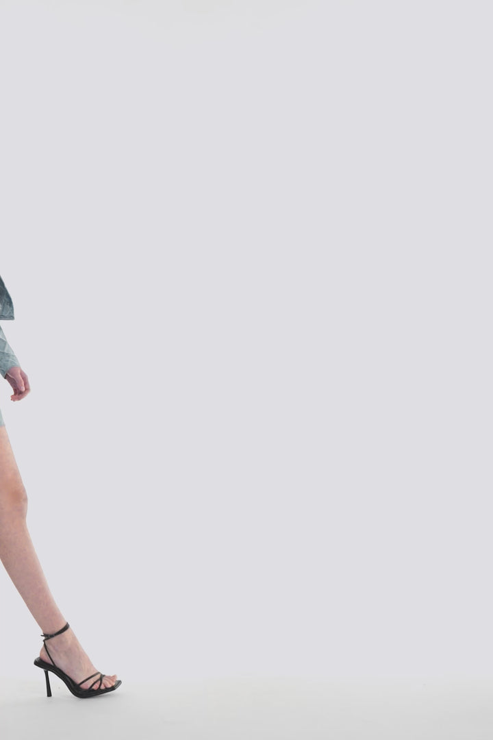 Women's denim jacket, slim fit, made from rigid indigo fabric 12.50 OZ. The distinctive pumice wash, which creates a laser effect, gives the garment a geometric and standout look. A refined and chic must-have.