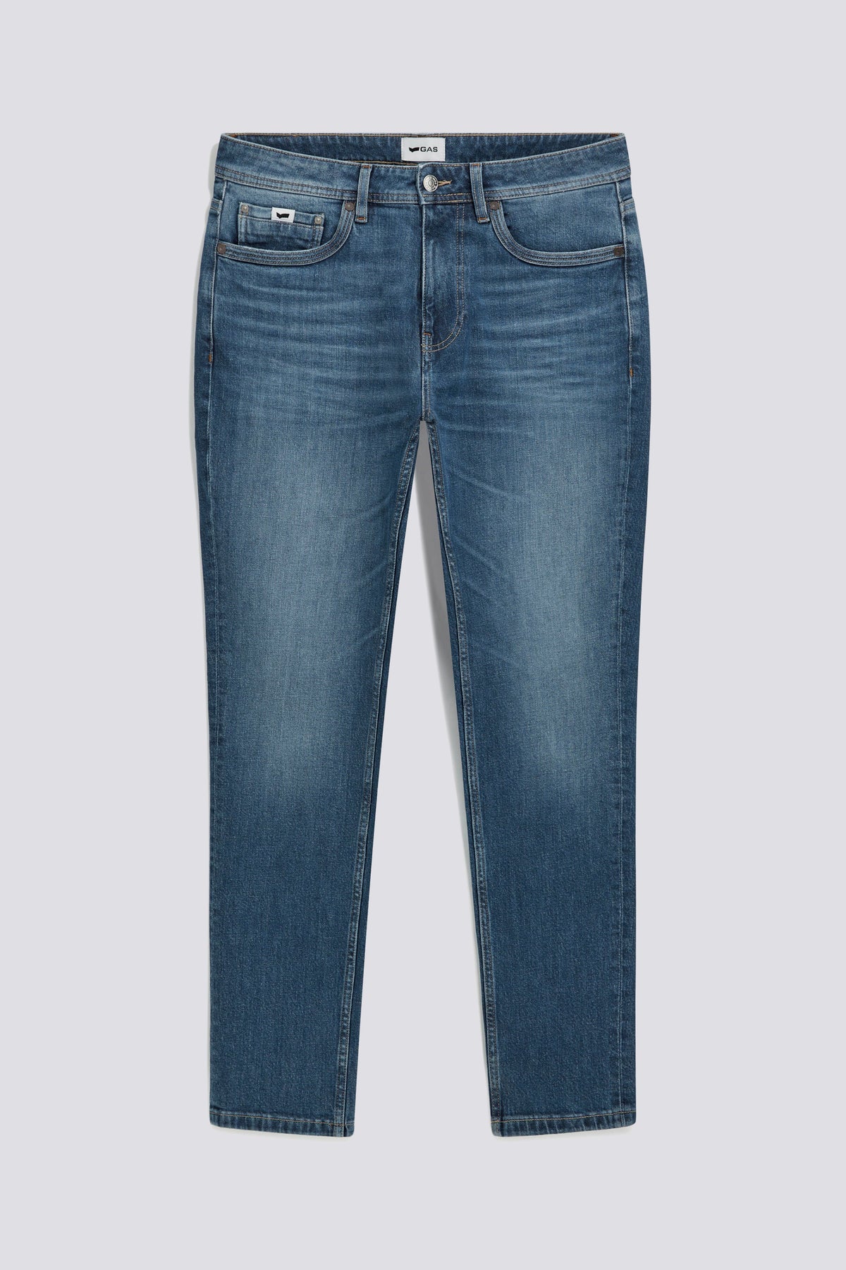 Men's 5-pocket denim with a tapered fit, crafted from authentic stretch denim fabric weighing 12.70 OZ, offering the perfect blend of comfort and style. The distinctive pocket details add character to this contemporary design by Gas Jeans. A versatile and cool piece, ideal for elevating any casual look.