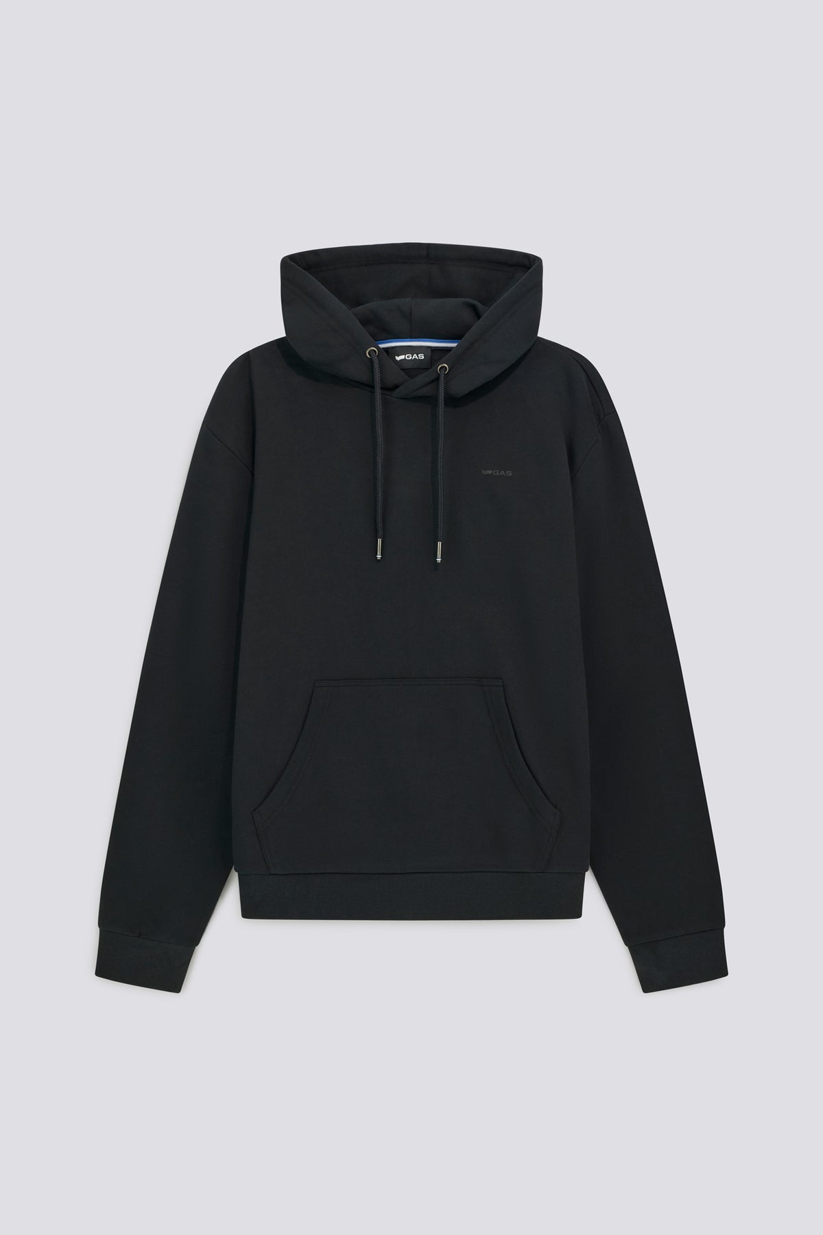 Men’s hooded sweatshirt in 100% cotton diagonal fleece, regular fit. A wardrobe essential reworked with a contemporary approach: clean lines, a kangaroo pocket, and an adjustable hood create a streamlined, versatile design. The sweatshirt features a tonal raised logo print on the front and an internal striped knit sweatband. Designed for everyday wear, it adds an effortless touch to any outfit.