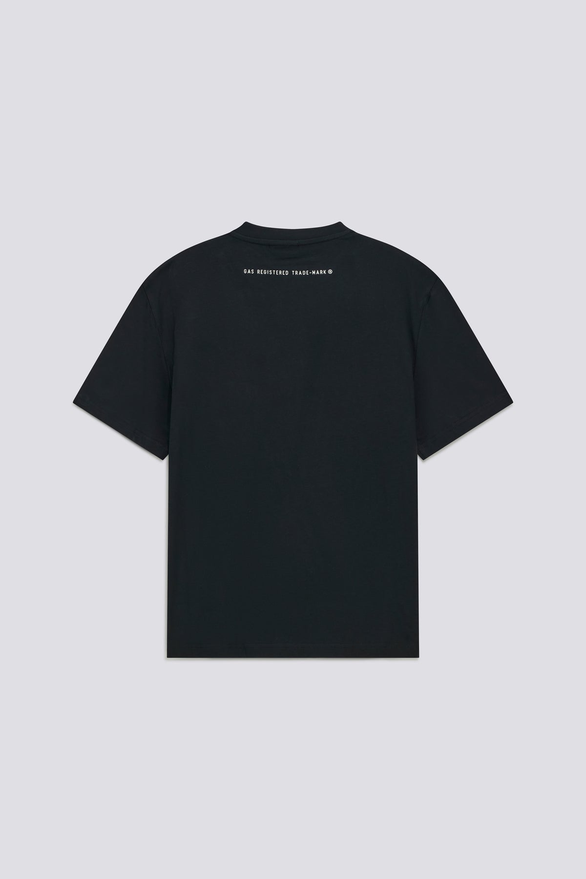 Short-sleeve T-shirt in cotton jersey, regular fit. The front graphic combines water-based print and flock details, creating a textured contrast. On the back, the water-based lettering completes the piece, making it a contemporary essential, perfect for bold urban looks.