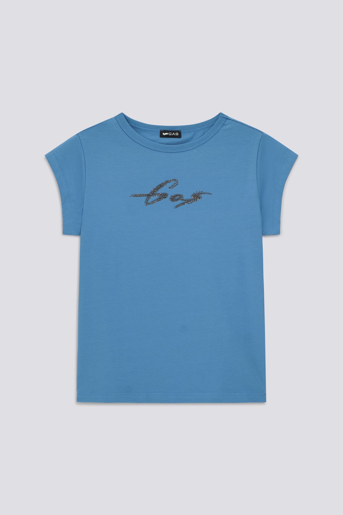 Women's slim fit short-sleeve t-shirt made from stretch cotton jersey for a close, comfortable fit. The design is finished with a rhinestone logo applied at the center front. An essential t-shirt designed to add character even to the most minimal looks, from denim to tailored pants.