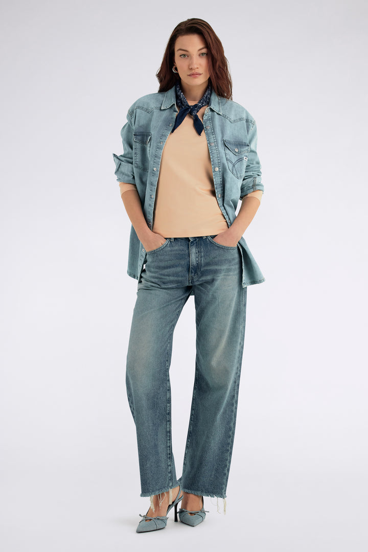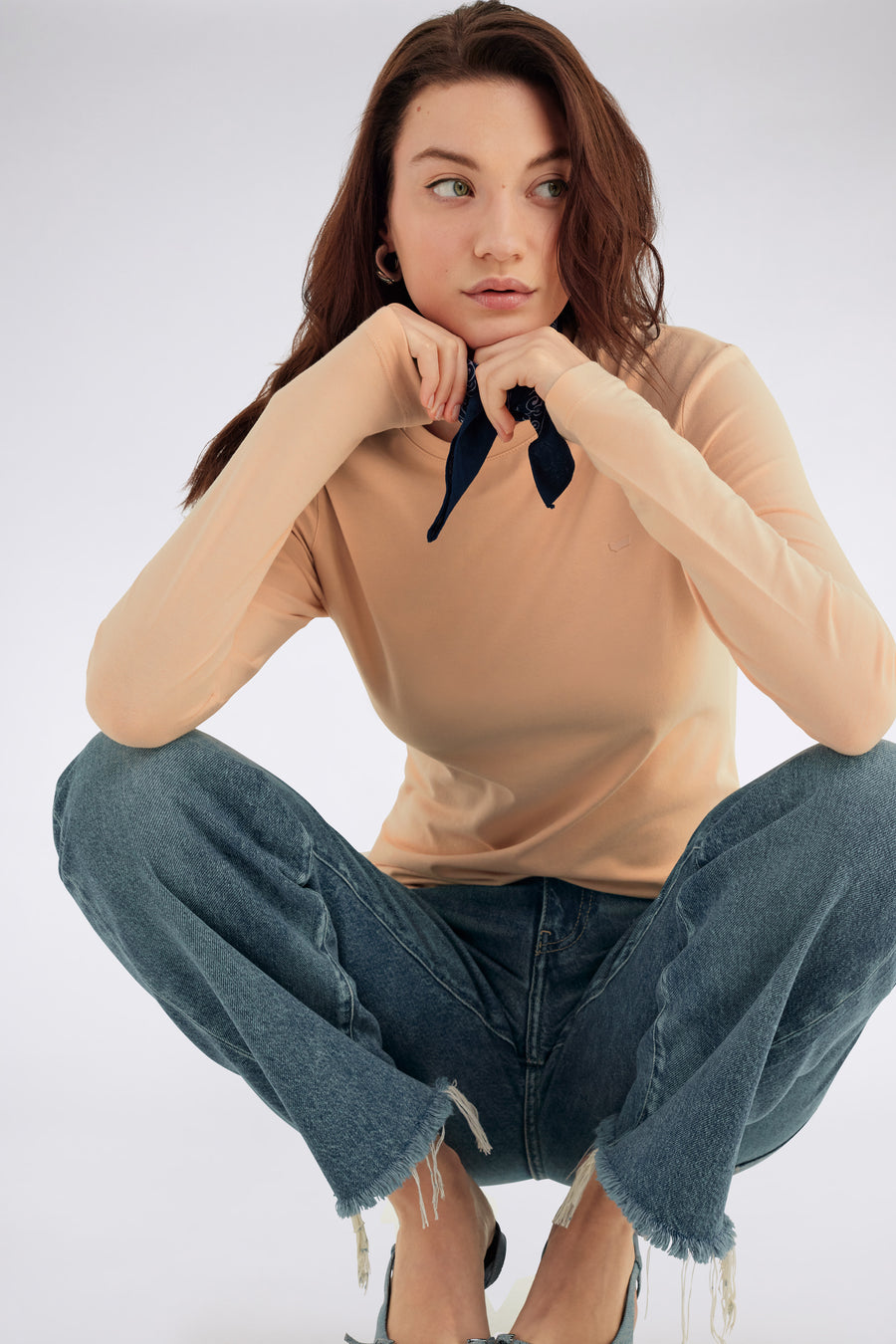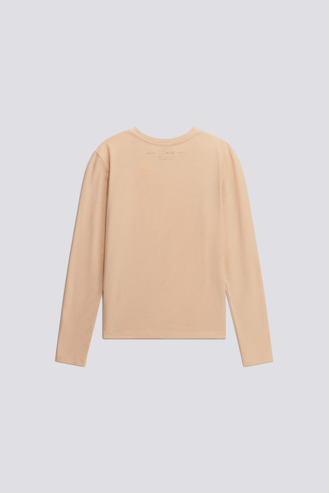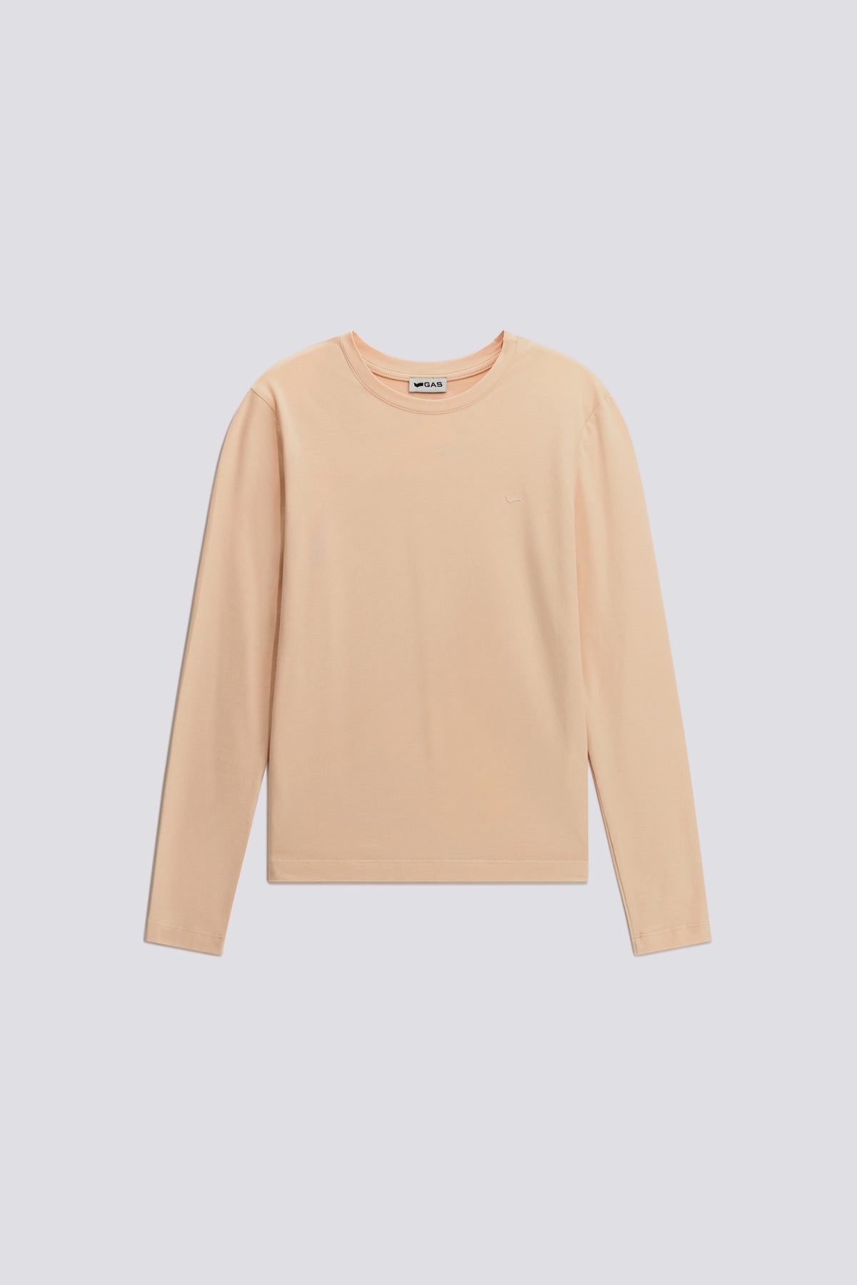 Women's long-sleeve t-shirt with a slim fit, crafted from stretch cotton jersey. The tonal embossed print on the back neckline adds a touch of style to this essential piece, perfect for minimal and refined looks.