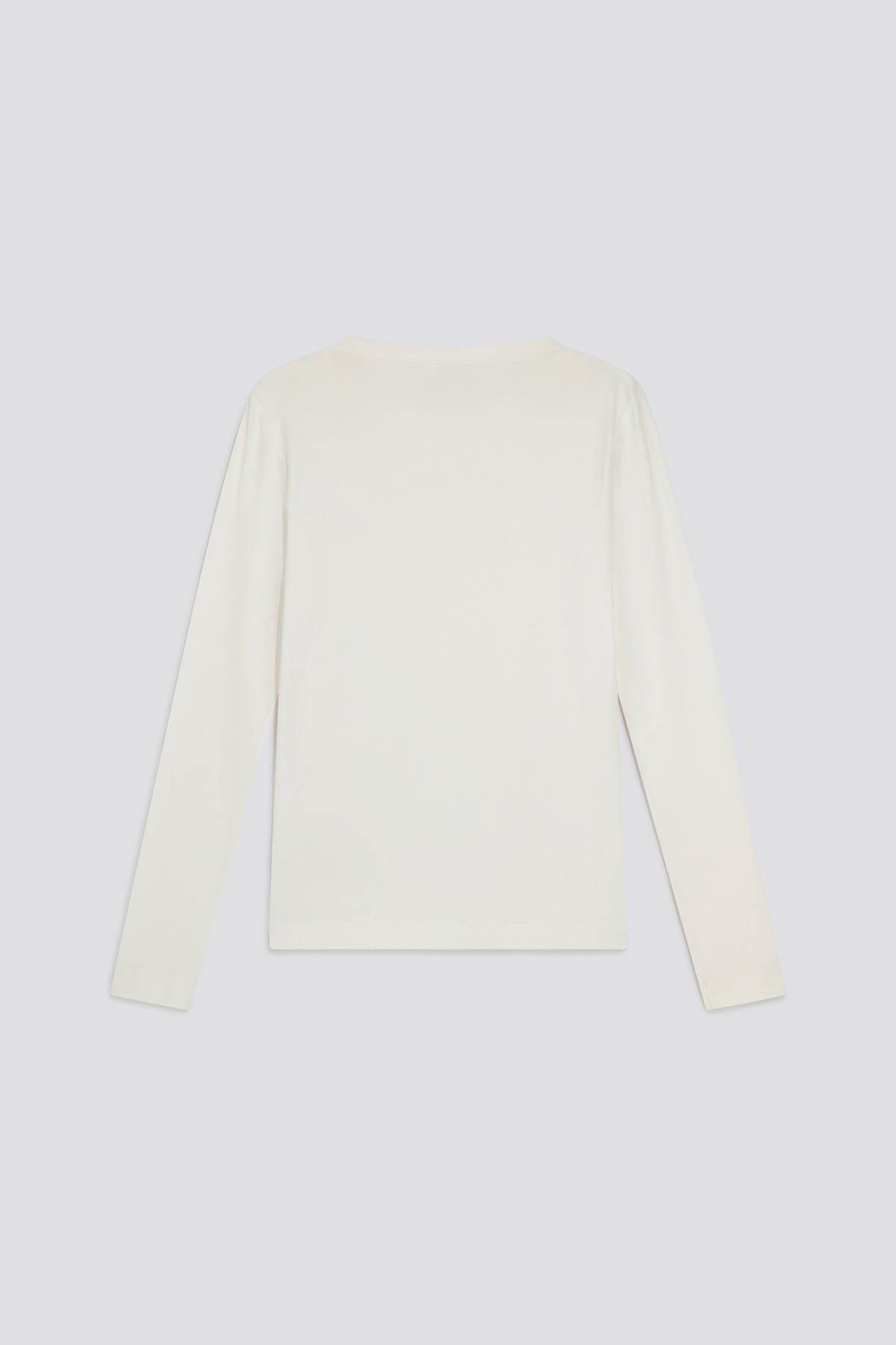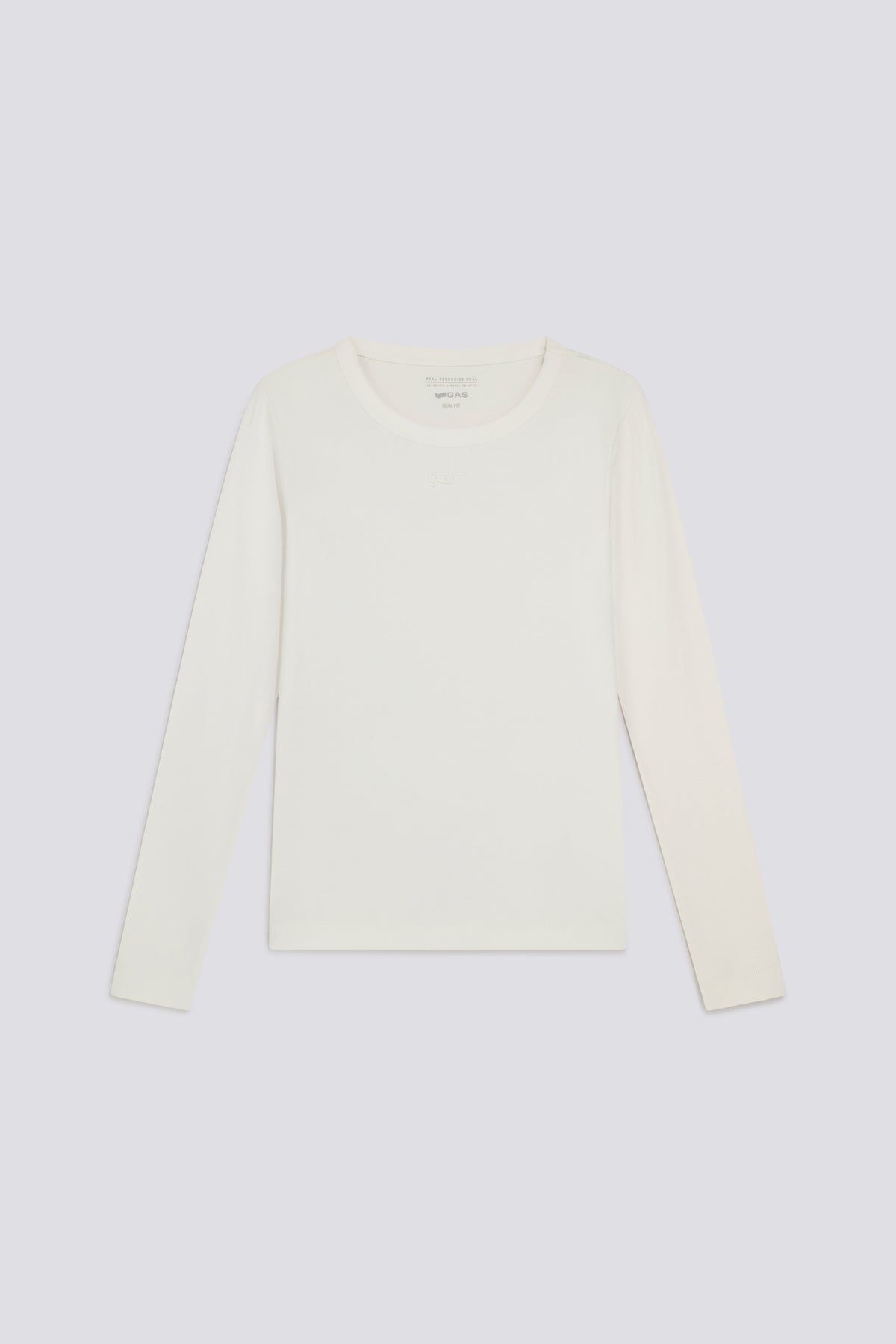 Women's long sleeve slim fit T-shirt in stretch cotton ribbing. The ribbed design follows the silhouette, while the raised tonal logo print at the center adds a minimal graphic touch. An essential piece, designed to be worn on its own or as a base in everyday looks.