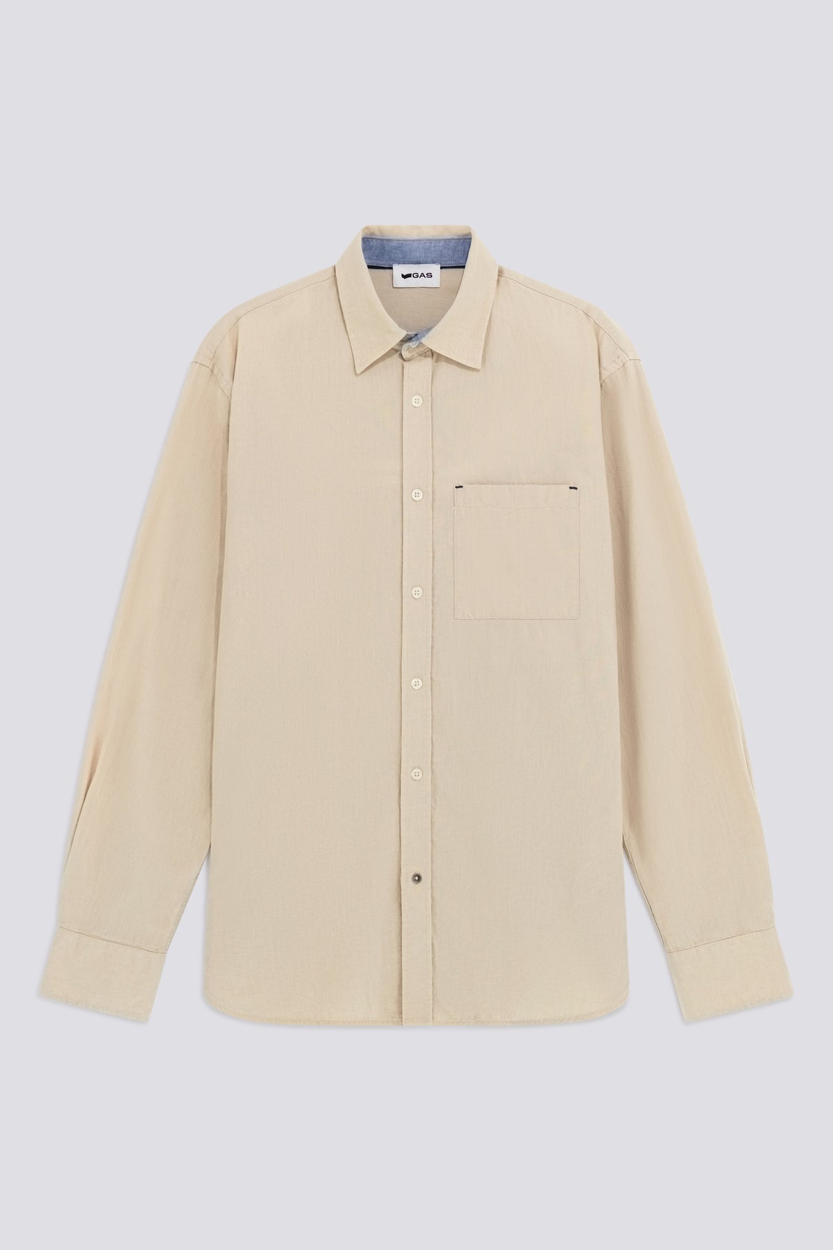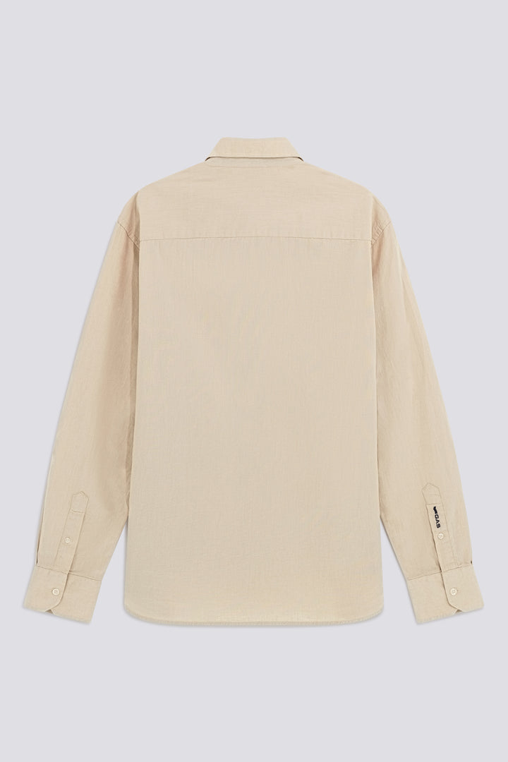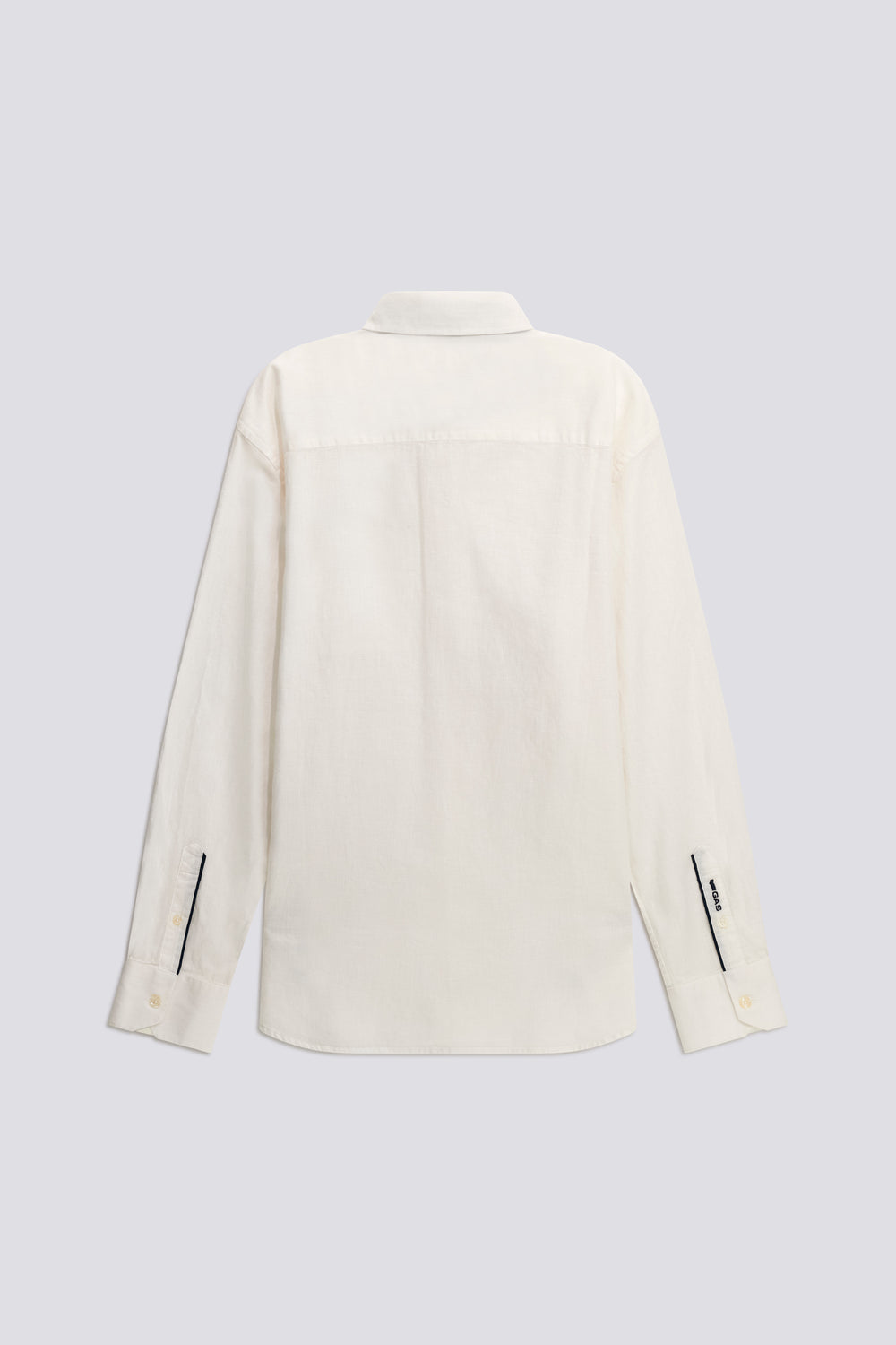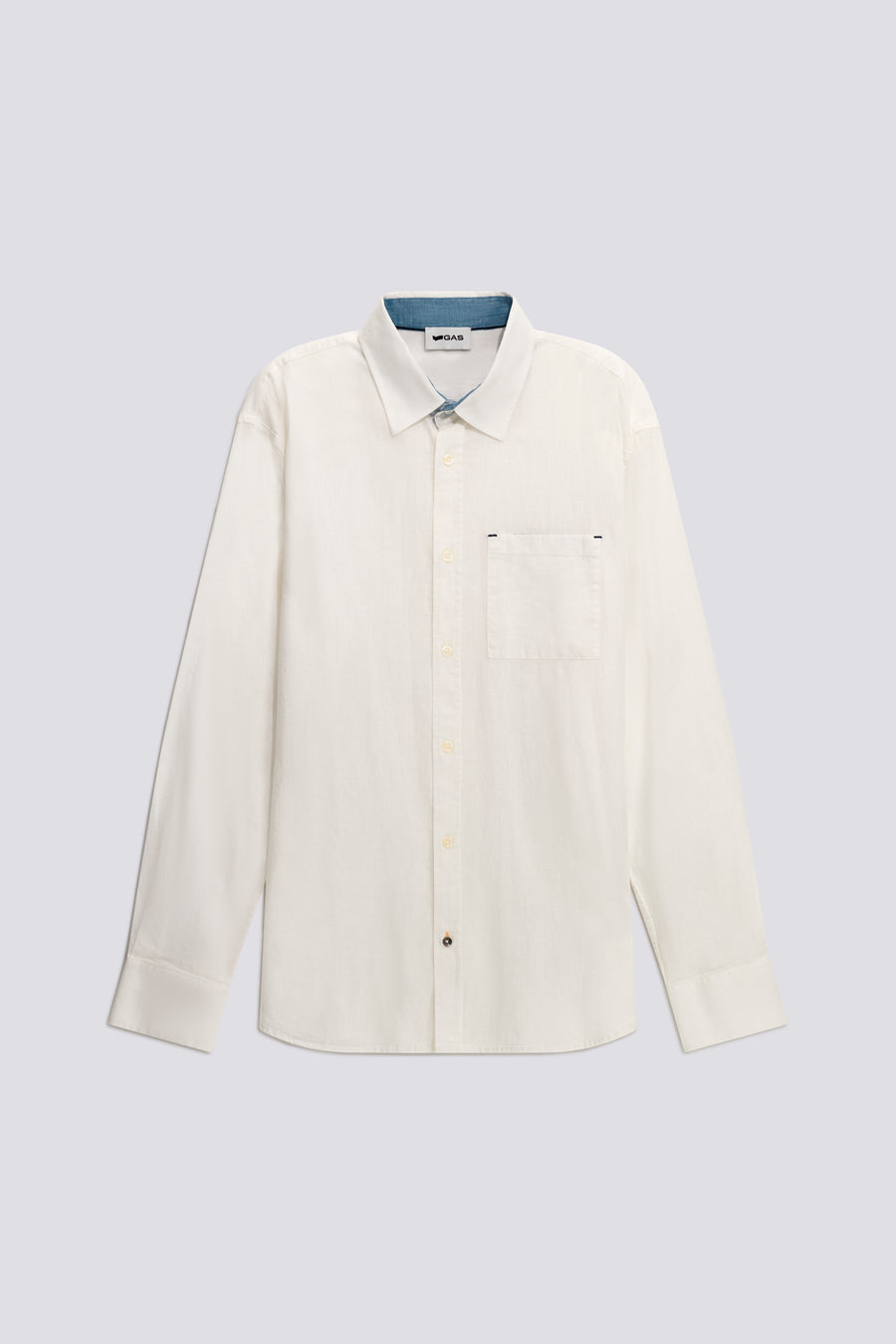 Camisa de hombre de manga larga, corte regular: la combinación perfecta entre libertad de movimiento y estilo. Confeccionada en una mezcla de lino y algodón teñido en hilo, esta camisa garantiza comodidad y transpirabilidad en cada ocasión. Los detalles en contraste y el logo ubicado cerca del puño añaden un toque distintivo, lo que la hace ideal para looks elegantes pero relajados.