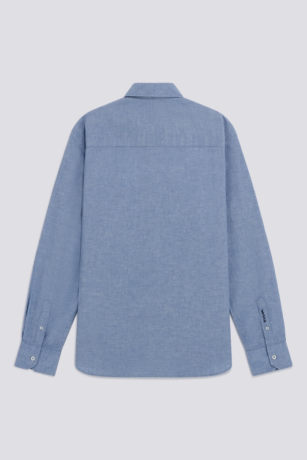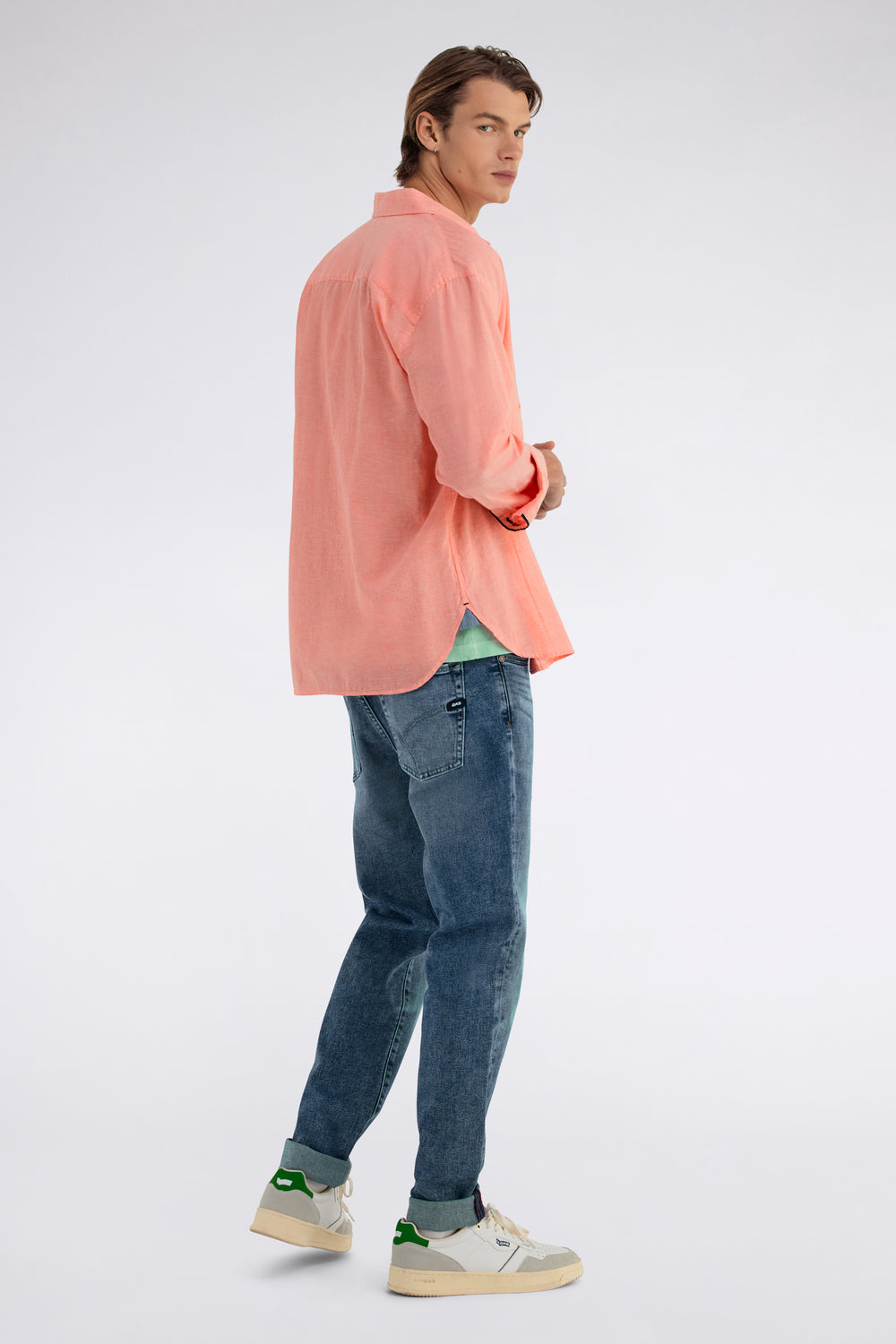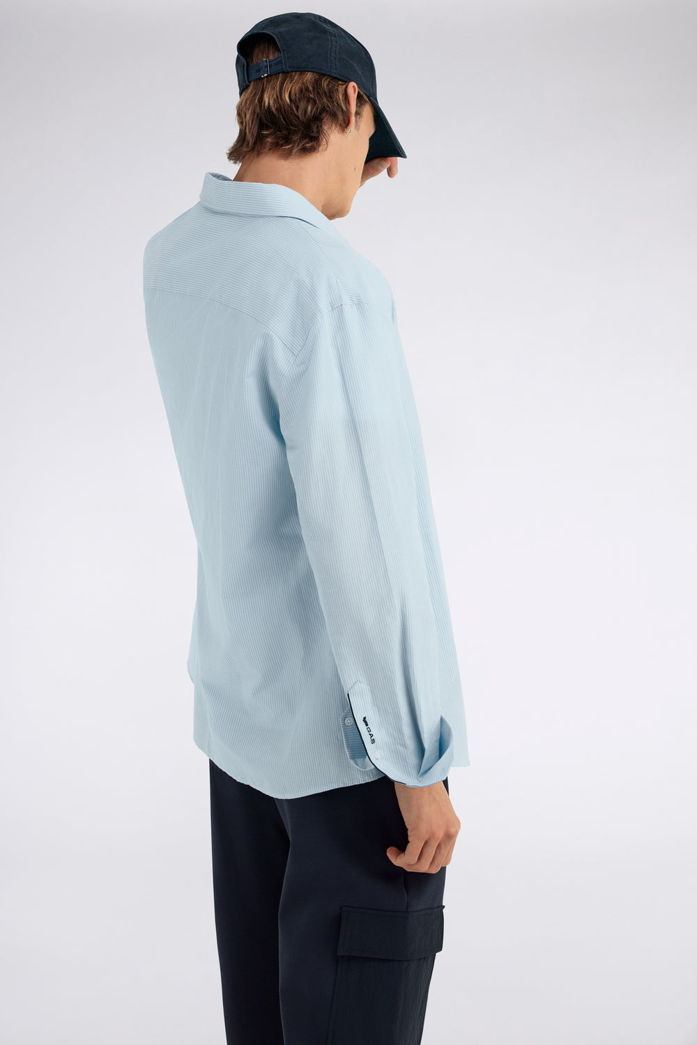 Camisa de hombre de manga larga, corte regular: la combinación perfecta entre libertad de movimiento y estilo. Confeccionada en una mezcla de lino y algodón teñido en hilo, esta camisa garantiza comodidad y transpirabilidad en cada ocasión. Los detalles en contraste y el logo ubicado cerca del puño añaden un toque distintivo, lo que la hace ideal para looks elegantes pero relajados.