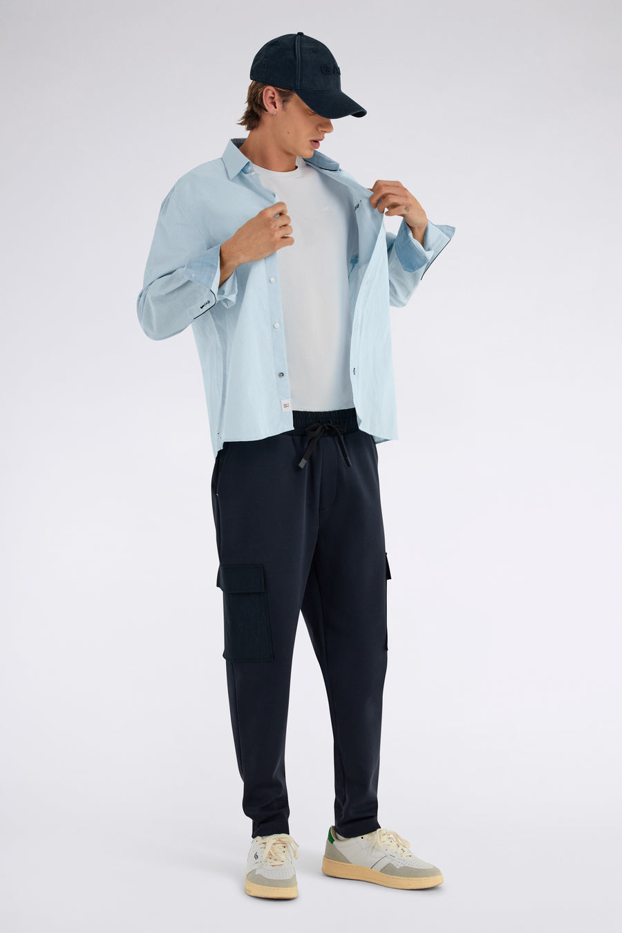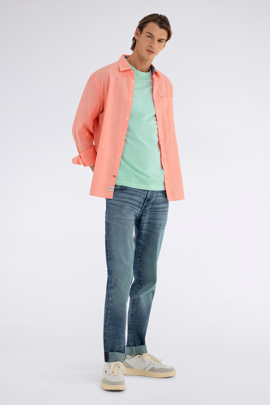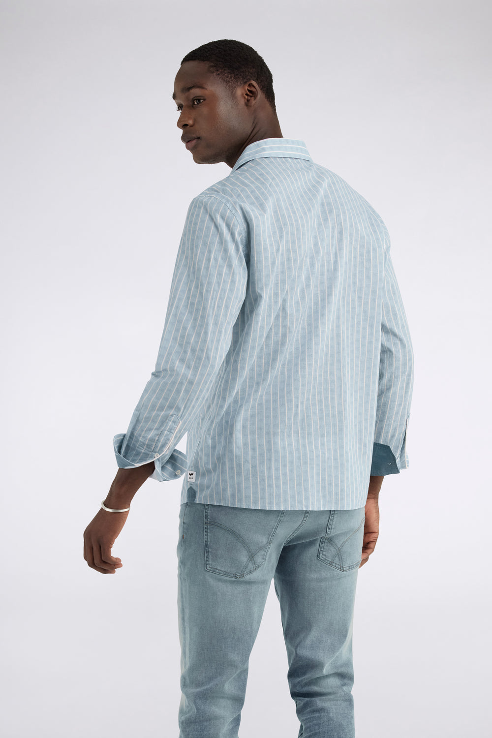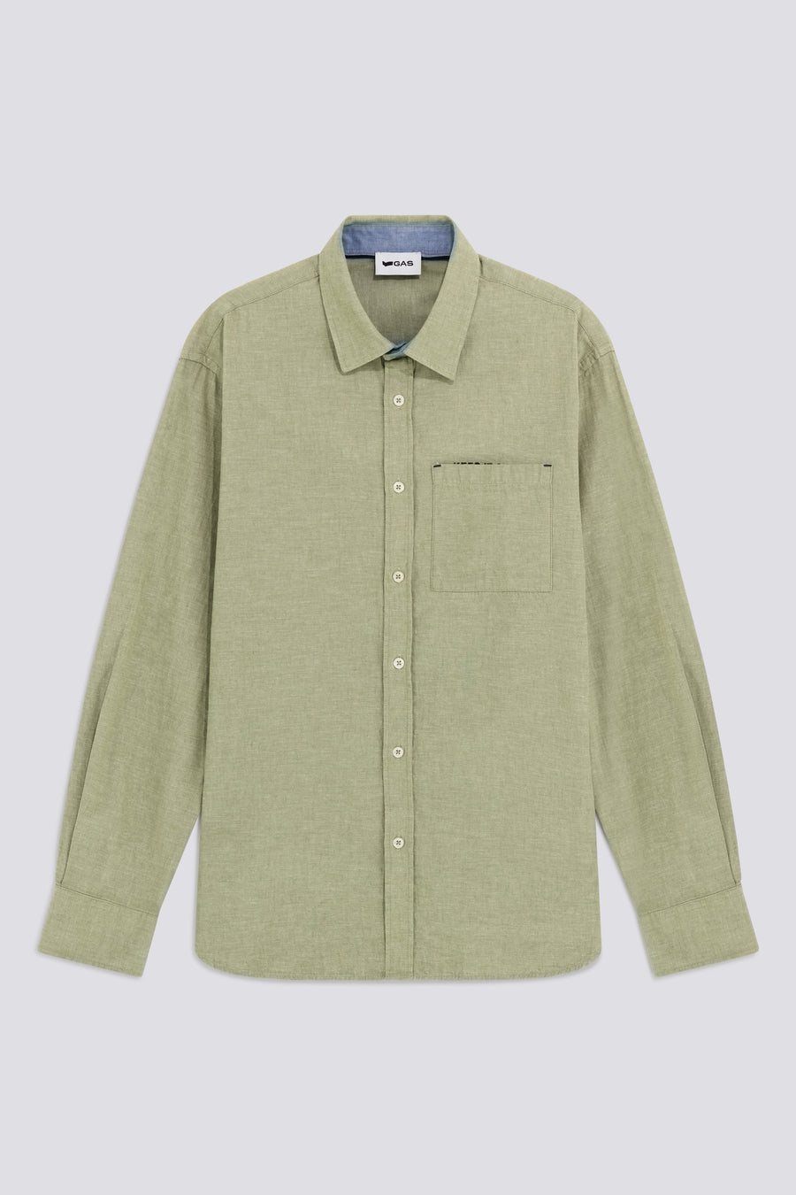 Camisa de hombre de manga larga, corte regular: la combinación perfecta entre libertad de movimiento y estilo. Confeccionada en una mezcla de lino y algodón teñido en hilo, esta camisa garantiza comodidad y transpirabilidad en cada ocasión. Los detalles en contraste y el logo ubicado cerca del puño añaden un toque distintivo, lo que la hace ideal para looks elegantes pero relajados.
