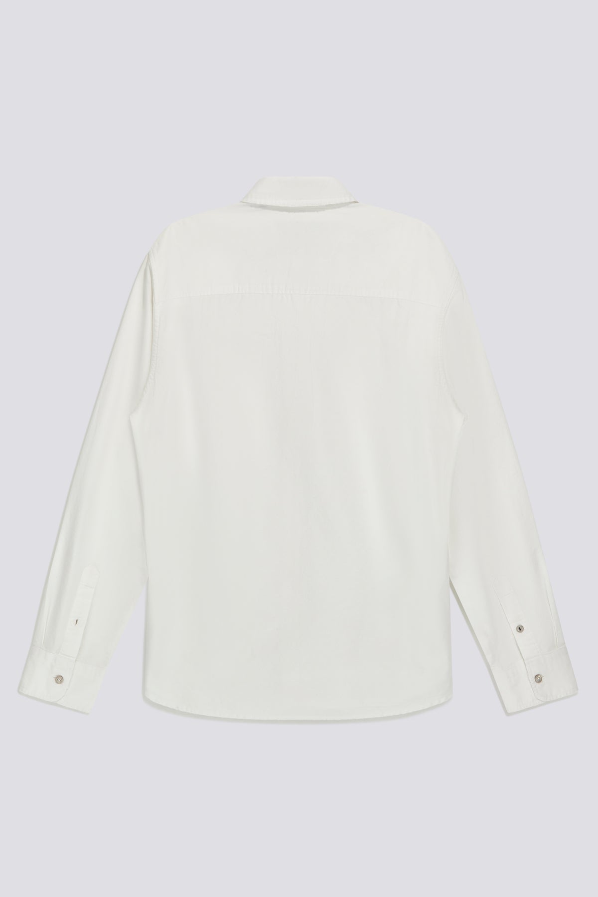 Camisa de hombre regular fit en oxford de algodón. Caracterizada por bordes raw, bolsillos aplicados en el pecho y bordado en contraste sobre la apertura del bolsillo. Una prenda esencial, donde los detalles y los acabados intencionadamente rústicos añaden carácter a un clásico del guardarropa masculino.