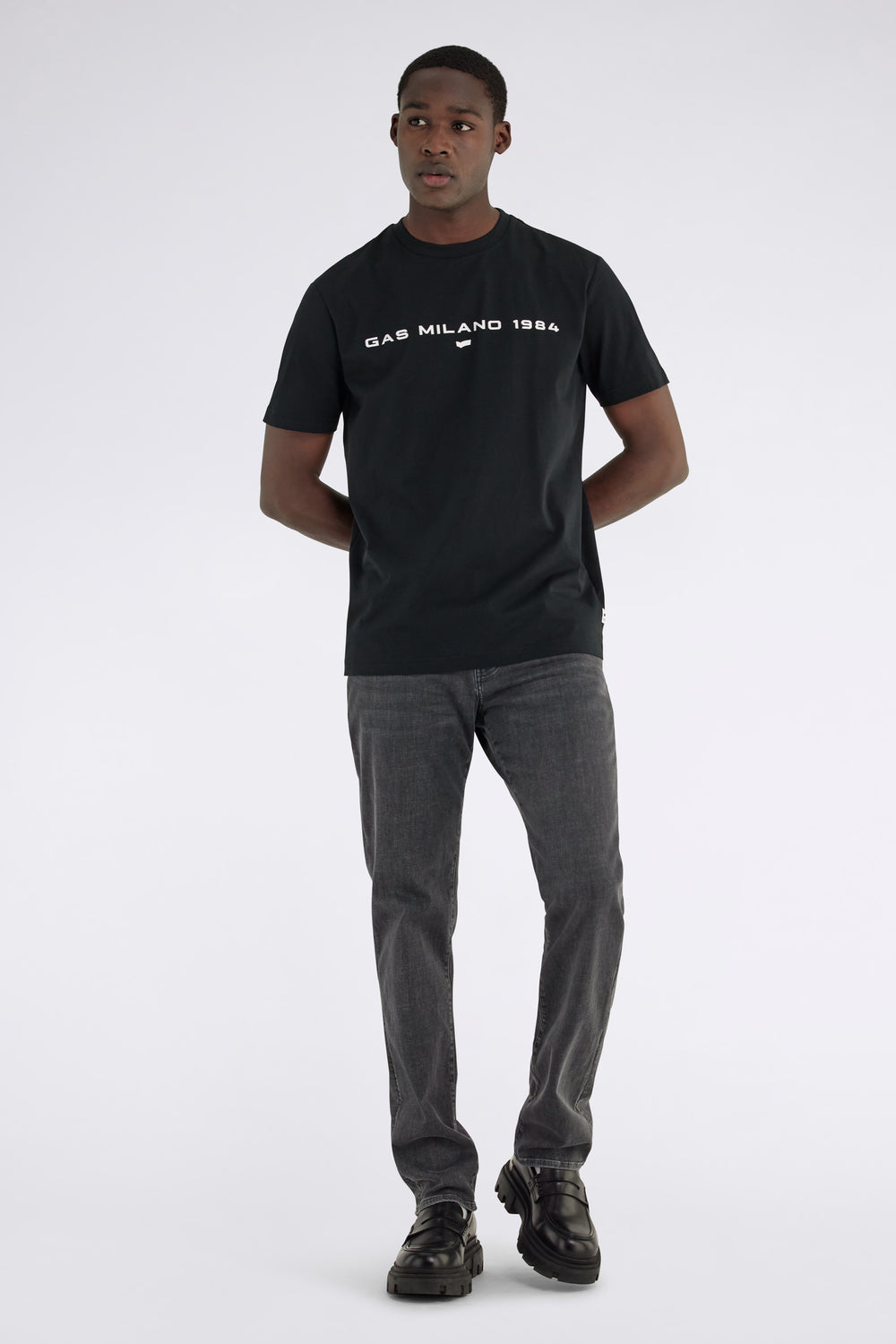 T-shirt homme à manches courtes, coupe regular, en jersey de coton stretch. Une pièce au style minimaliste et essentiel, personnalisée avec un imprimé logo à base d'eau sur le devant. Parfaite pour ceux qui recherchent une élégance décontractée, sans sacrifier la qualité et le confort. Idéale pour compléter vos looks casual avec une touche discrète et raffinée.