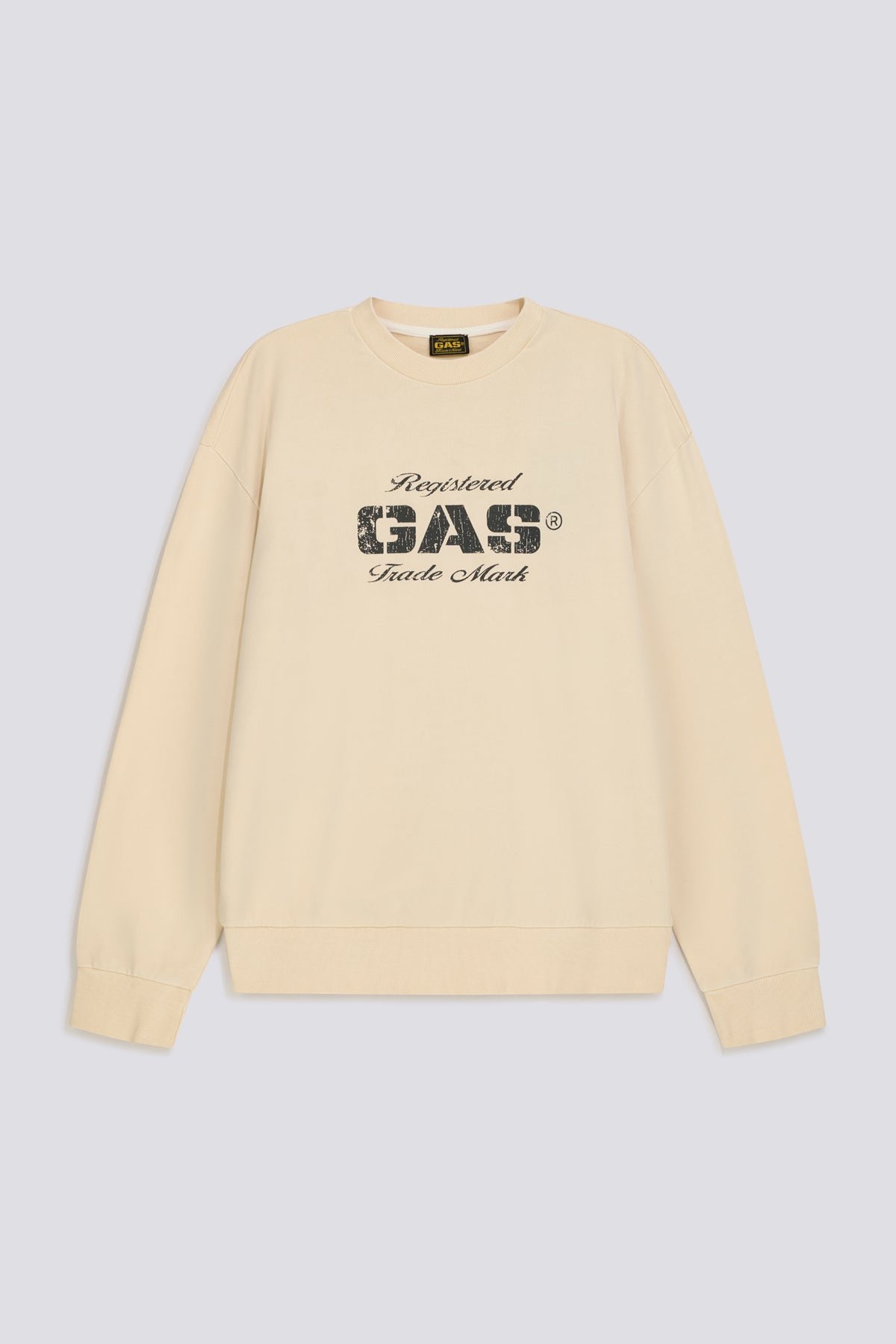Férfi regular fit környakas pulóver, 100% pamut diagonál anyagból készült. A ruhadarab festése egyedi, természetes hatást kölcsönöz a színnek, kiemelve a termék autentikus jellegét. Középen heritage logó nyomattal, amely a GAS archívumára utal, és grafikai karaktert ad a darabnak.