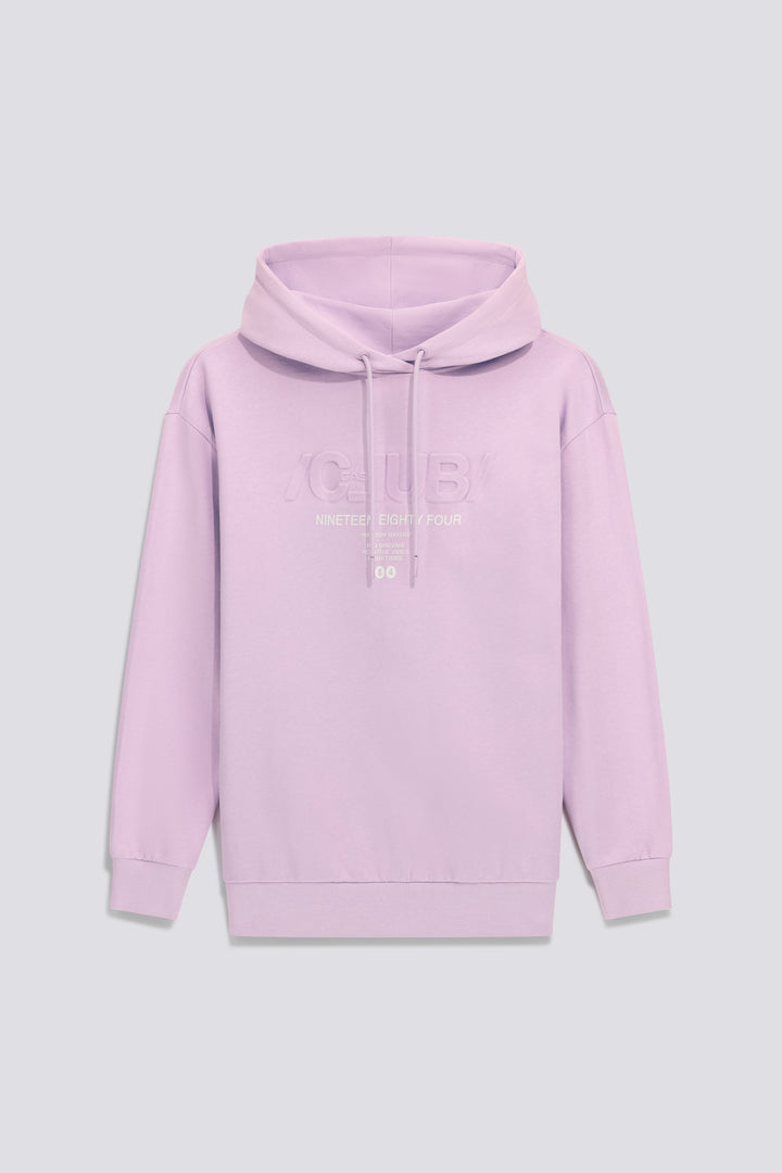 Relaxed fit hoodie, crafted from diagonal cotton fleece for unique comfort and a contemporary style. The water-based and embossed contrasting print on the front adds character to this piece, perfect for a trendy urban look.
