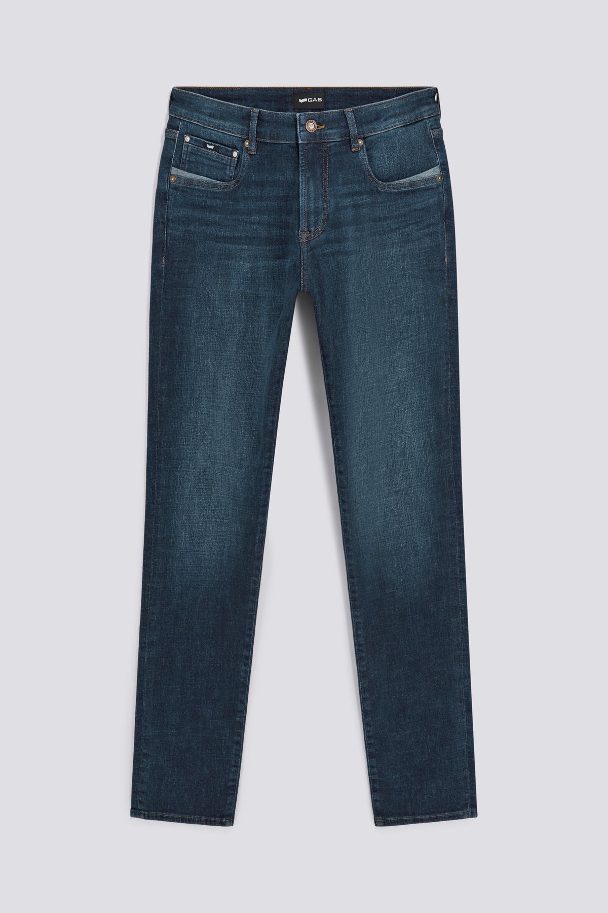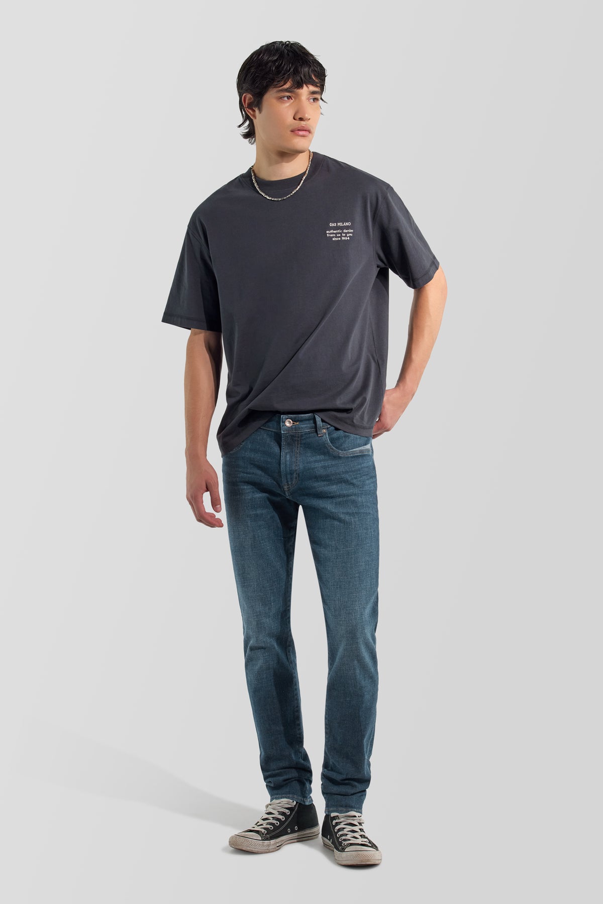 Jeans uomo skinny fit pensati in denim indigo comfort da 10.30 oz. Il lavaggio stone wash medio scuro con leggere abrasioni dona un aspetto autentico e vissuto, esaltando le linee pulite del modello. Un capo essenziale e contemporaneo, ideale per look quotidiani dal carattere deciso, da indossare con T-shirt o camicie leggere per uno stile effortless ma curato.