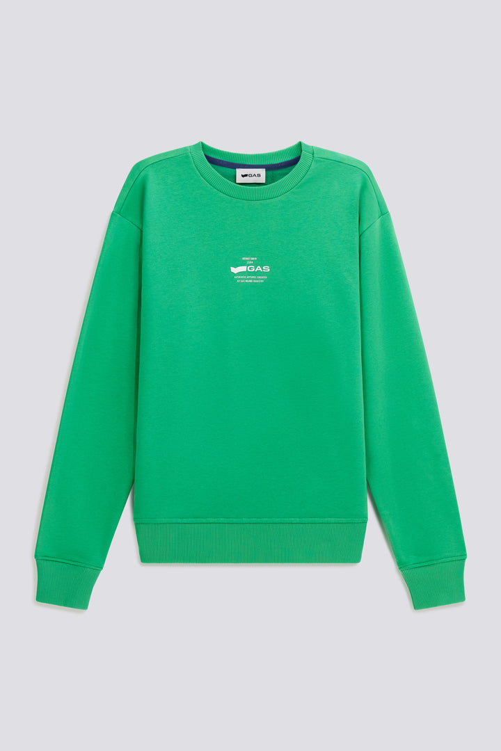 Felpa uomo girocollo dal fit regular, realizzata in felpa 100% cotone per garantire comfort e stile in ogni occasione. La stampa logo transfer a contrasto sul davanti aggiunge un tocco distintivo a questo capo essenziale del guardaroba primaverile.