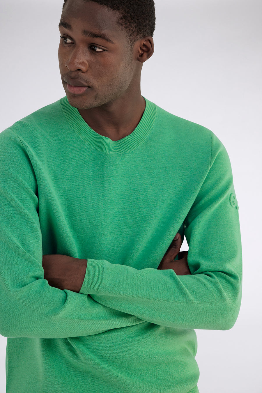 Maglia uomo girocollo regular fit, un perfetto equilibrio tra stile e comfort. Realizzata in tessuto tubico bicolor in misto viscosa, è caratterizzata dal logo embossed sulla manica. Perfetta da abbinare a un denim per un look rilassato o a un pantalone chino per un'eleganza senza sforzo.