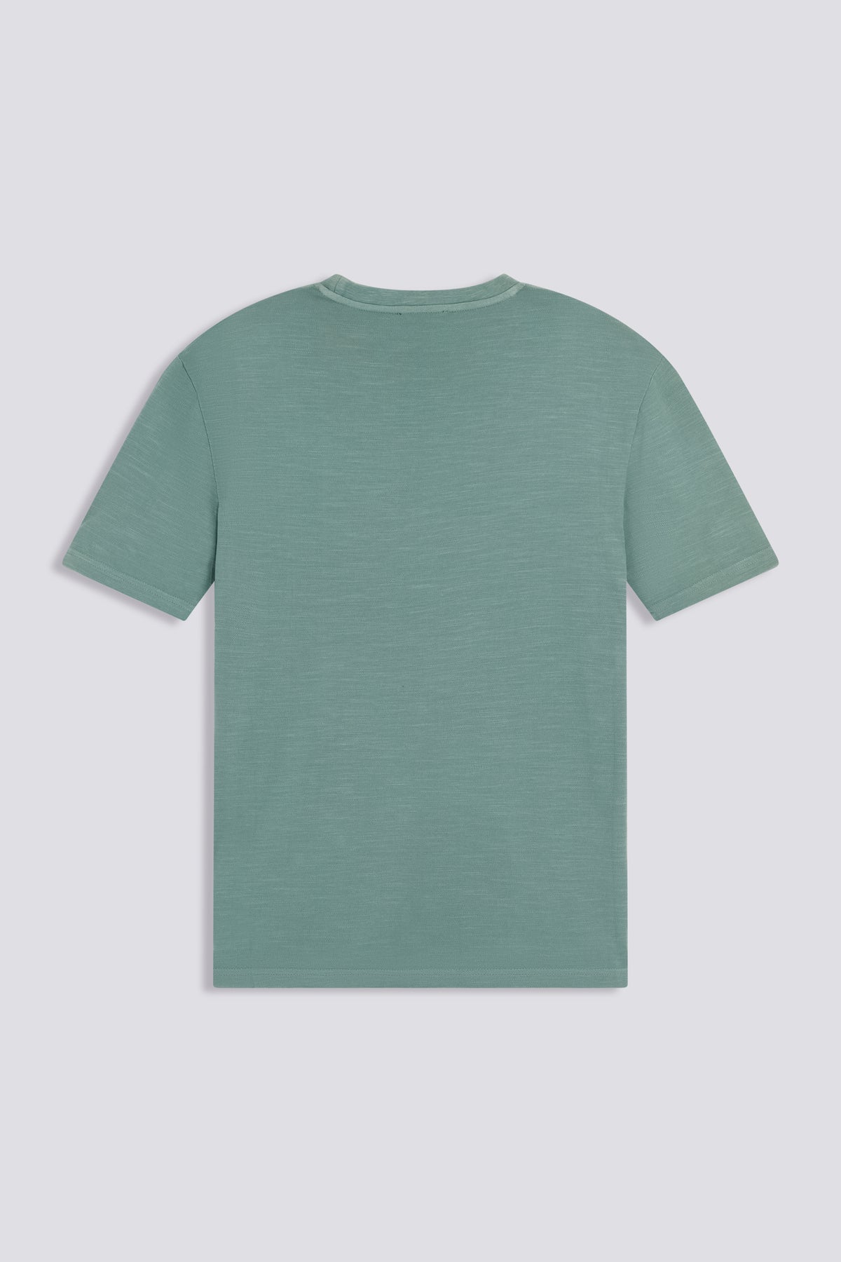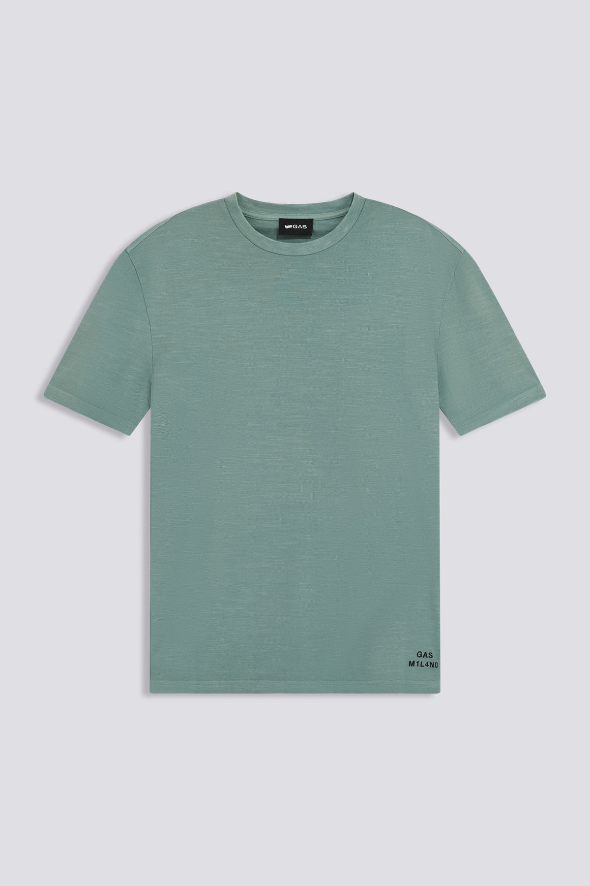 T-shirt uomo regular fit in 100% cotone piqué slub, dalla texture leggermente materica e autentica. La tintura a pigmento dona al colore un effetto vissuto e profondo mentre la personalizzazione con ricamo logo sul fondo davanti sinistro, la rende un essential contemporaneo.