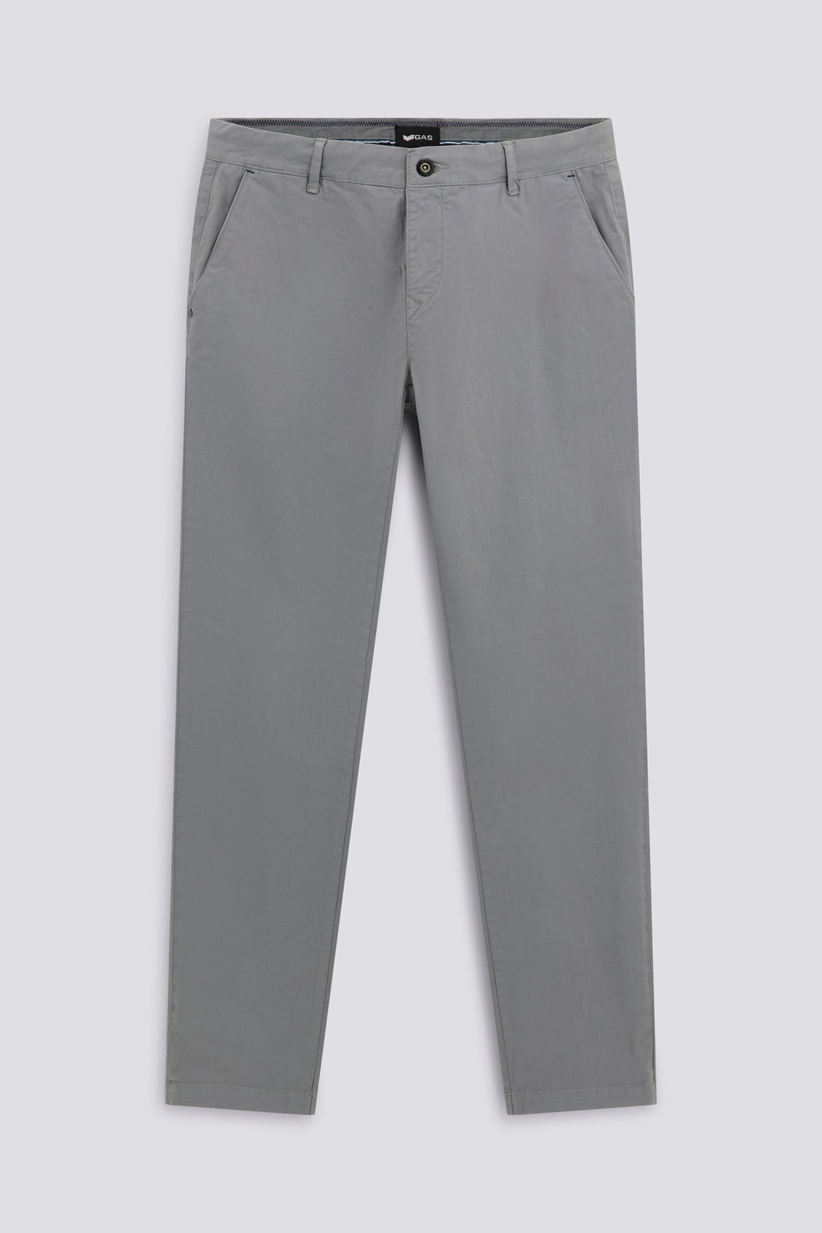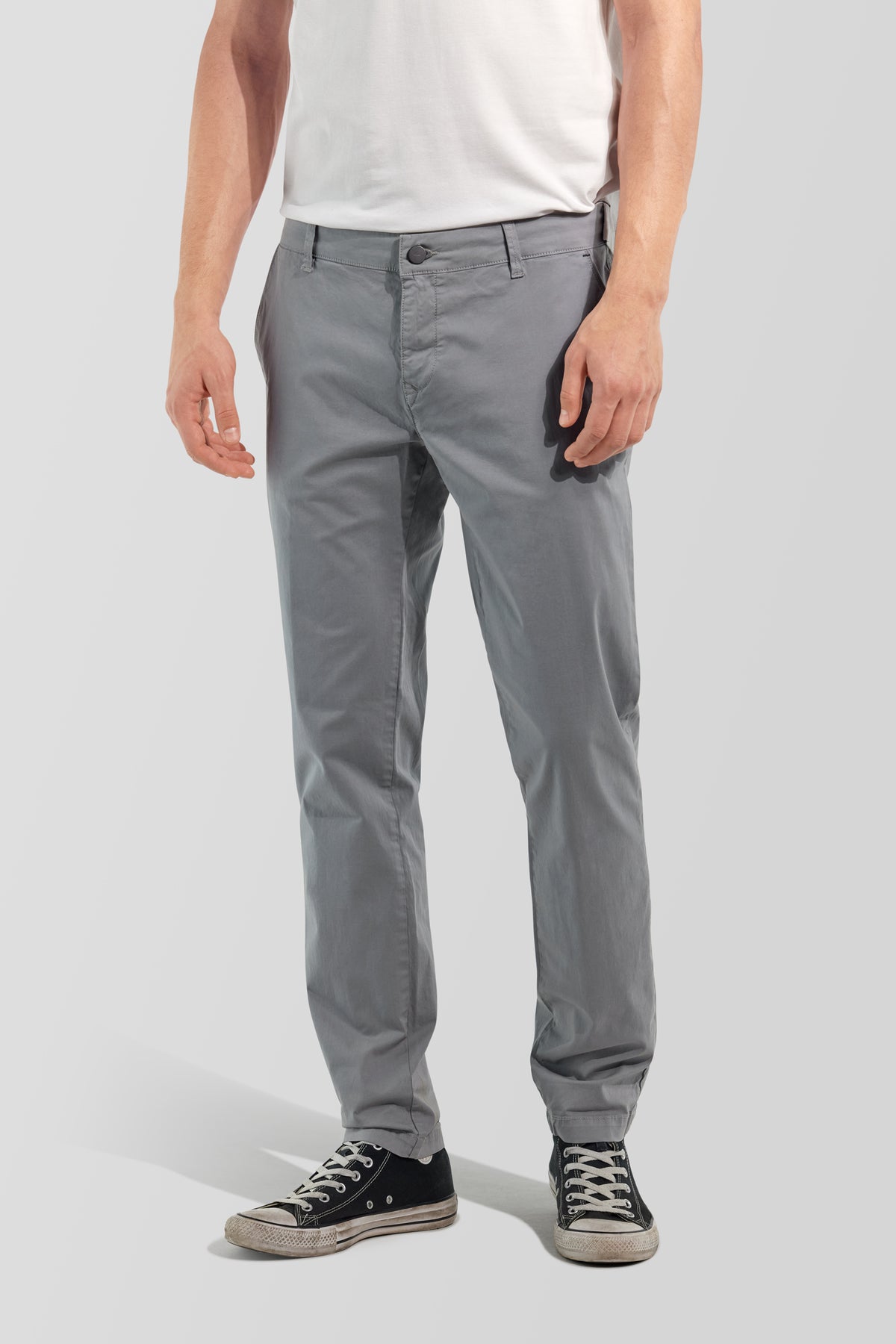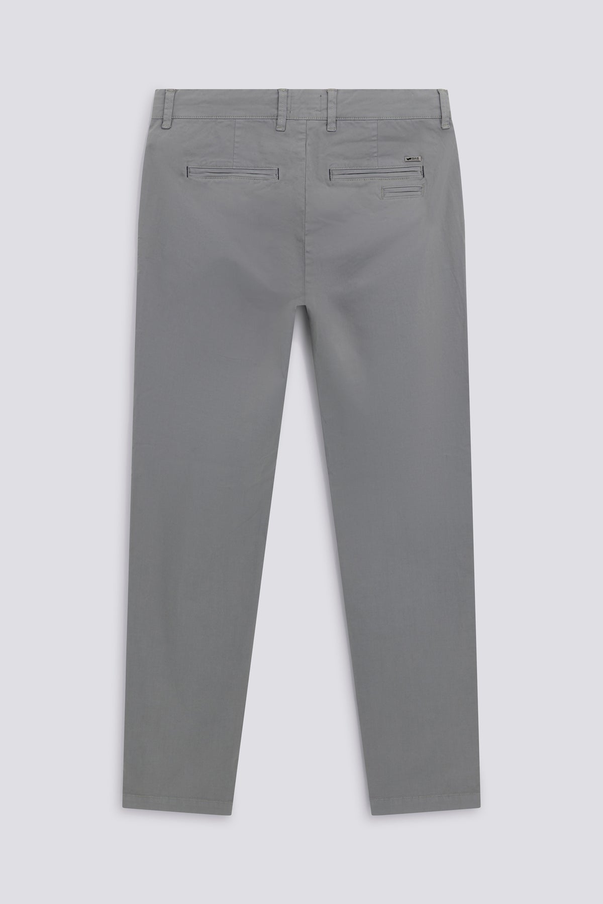 Pantaloni chino uomo slim fit. Realizzati in gabardina di cotone stretch tinto in capo, unisce una linea pulita a una vestibilità asciutta e confortevole. I dettagli interni in chambray e il piping rigato sull’interno cintura completano il design mentre la placca logo in metallo sopra la tasca posteriore destra firma il capo. Un chino essenziale e versatile, pensato per un utilizzo quotidiano ma anche per look più formali.