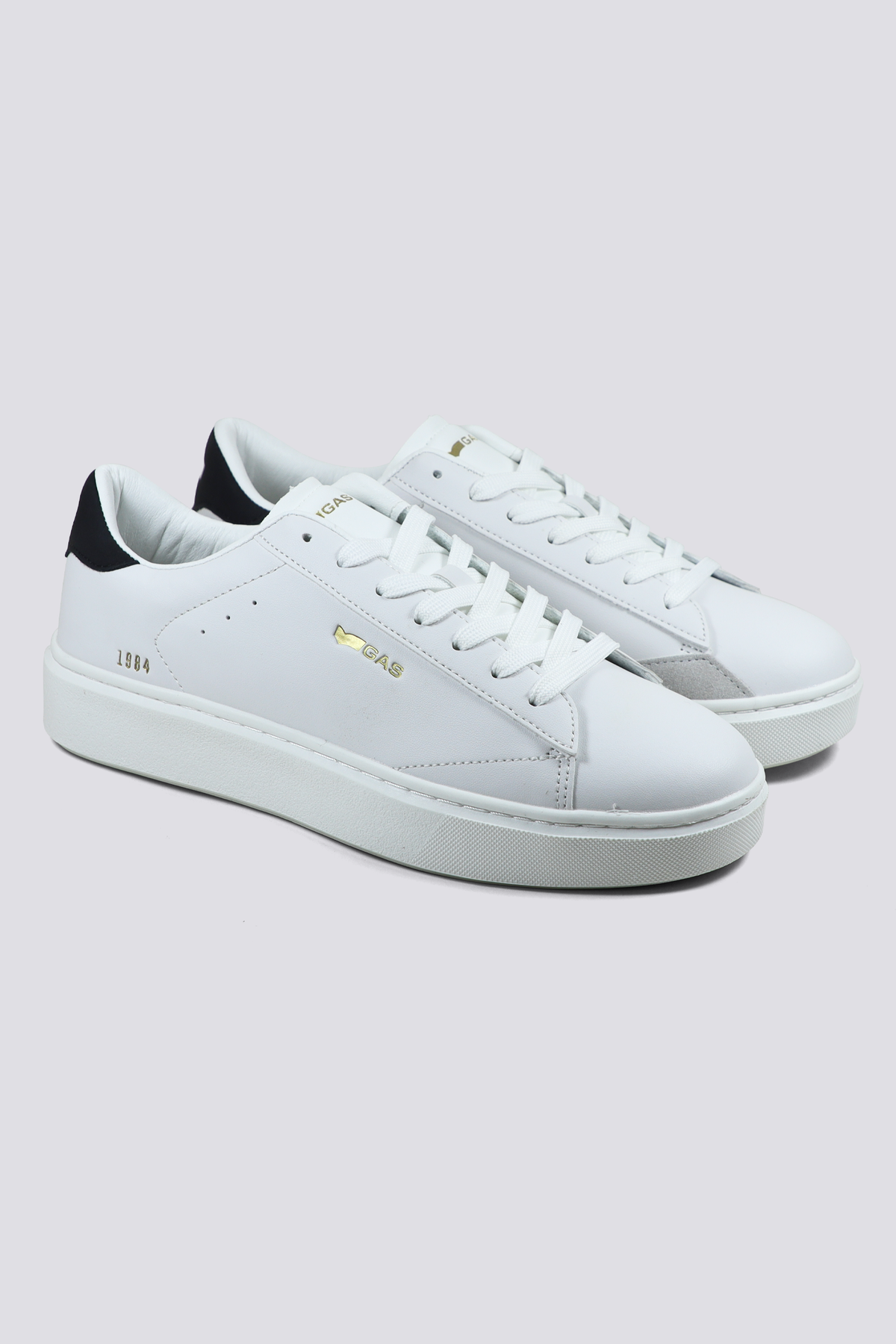 Sneakers uomo low-top dal design essenziale e contemporaneo. La tomaia bianca è definita da linee pulite e dettagli discreti, con microforature laterali che alleggeriscono la superficie. Il logo GAS in finitura dorata compare sul lato, mentre il 1984 stampato sul tallone richiama le origini del brand.